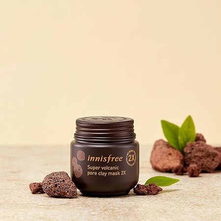 Innisfree pore clearing clay mask 2x super volcanic clusters face treatment.